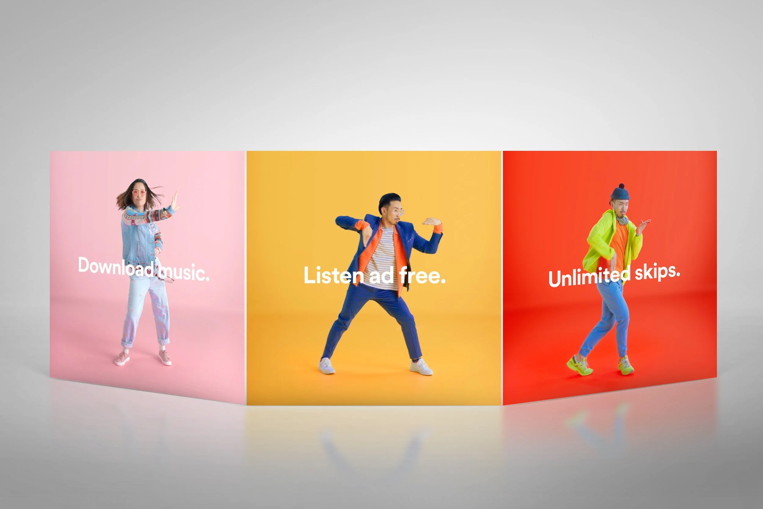 A series of short content featuring some cool dance moves. They’re vibrant and energetic, just like the feeling you get when you enjoy Spotify Premium. We interpreted these wonderful small joys of “listening uninterrupted by ads”, “downloading your favourite songs”, and making “unlimited skips” into a unique dance choreography.